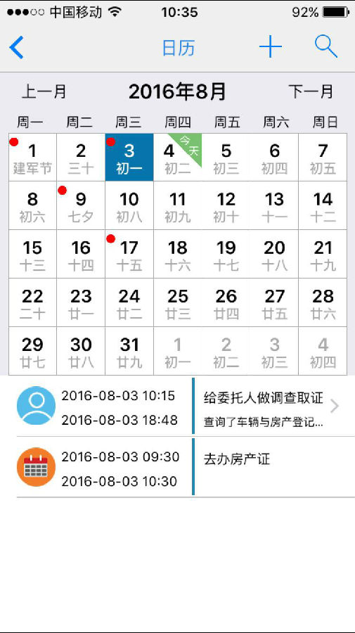 日歷:個(gè)人的每天行程安排,手機(jī)自帶的日歷內(nèi)容也會(huì)顯示哦!
