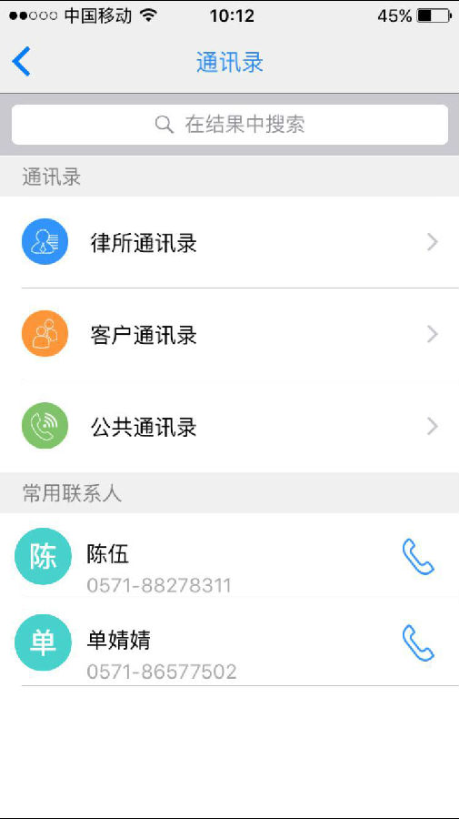 打開e律師APP進入通訊錄