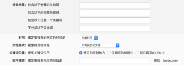 百度的高級檢索,可以限定關鍵詞,限定要搜索的網頁的時間,限定文檔格式等。