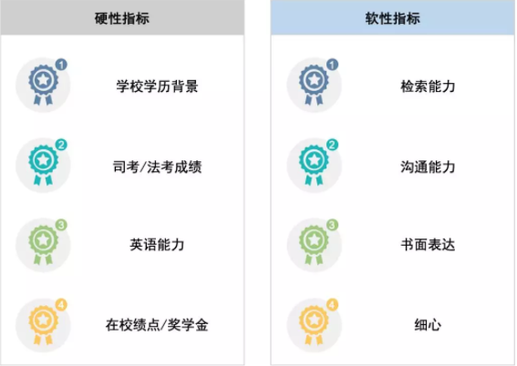 進入新手區的標準很簡單,即通過律師事務所的篩選、進入律所實習并留用。在律所選拔方面,會包含硬性標準和軟性標準,典型的硬性指標有學校學歷背景、是否通過司考/法考、英語能力、在??凕c/獎學金等。