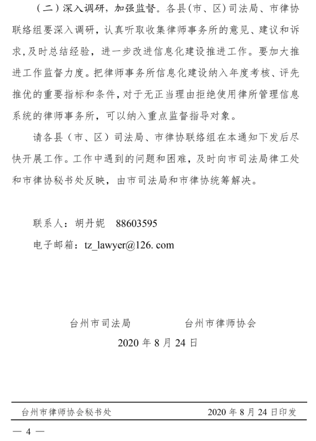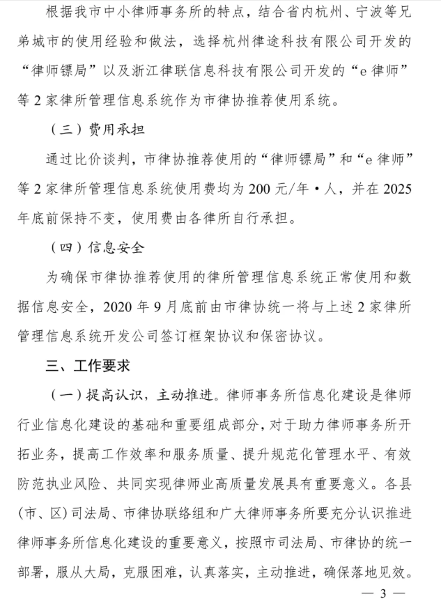 繼杭州、寧波市司法局之后,臺(tái)州市司法局、臺(tái)州市律協(xié)發(fā)布的臺(tái)律協(xié)(2020)05號(hào)文件:《關(guān)于全面推進(jìn)律師事務(wù)所信息化建設(shè)工作的通知》,預(yù)計(jì)目標(biāo)將于2020年12月底前,推進(jìn)臺(tái)州全市律師事務(wù)所信息化建設(shè)工作,并實(shí)現(xiàn)與浙江省律師綜合管理平臺(tái)完成對(duì)接,初步實(shí)現(xiàn)律師行業(yè)信息化。