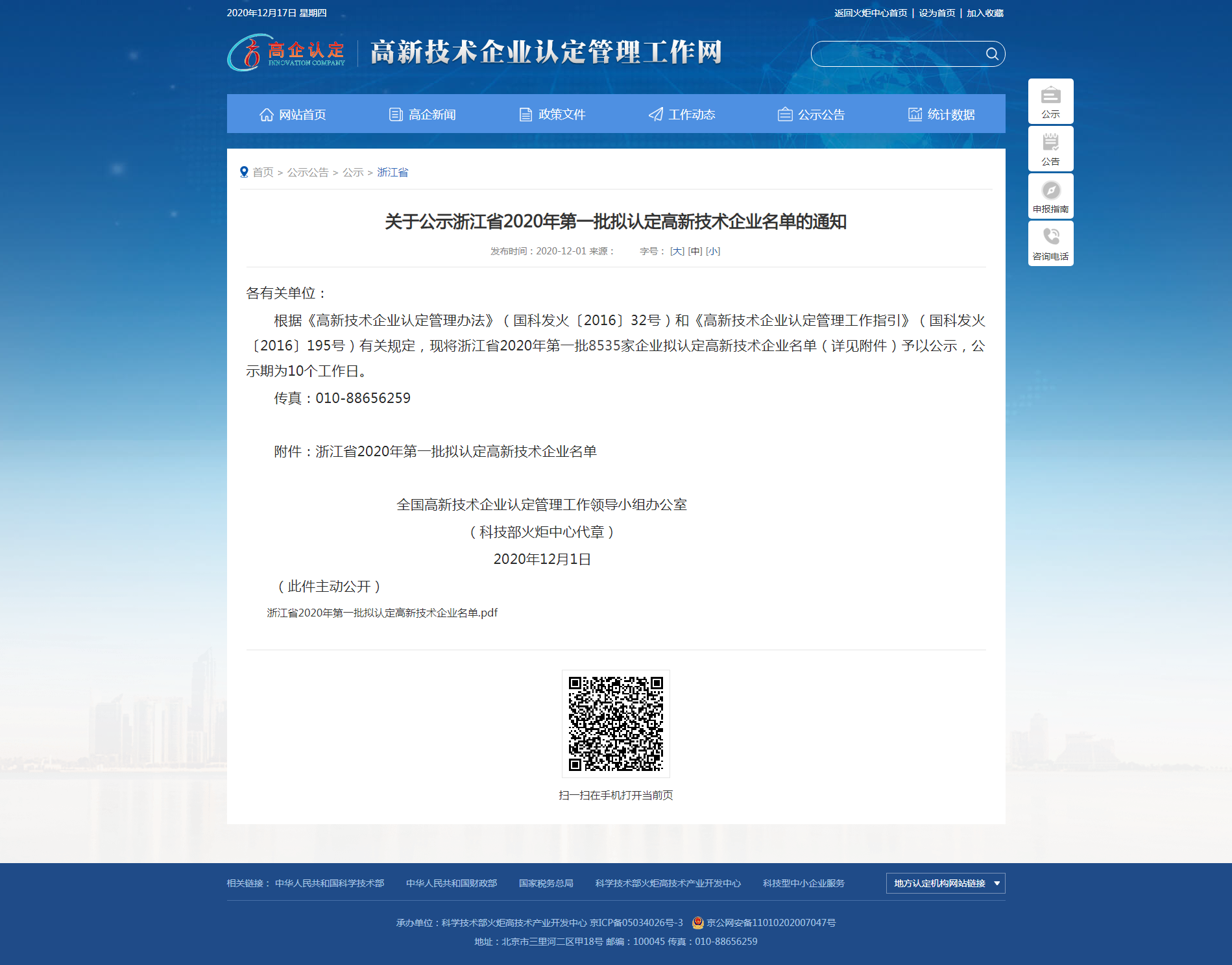 為加大對科技型企業特別是中小企業的政策扶持,有力推動大眾創業、萬眾創新,培育創造新技術、新業態和提供新供給的生力軍,促進經濟發展,根據《高新技術企業認定管理辦法》(國科發火〔2016〕32號)和《高新技術企業認定管理工作指引》(國科發火〔2016〕195號)有關規定,2020年12月1日,全國高新技術企業認定管理工作領導小組辦公室發布《關于公示浙江省2020年第一批擬認定高新技術企業名單》公示,浙江律聯信息科技有限公司榜上有名。